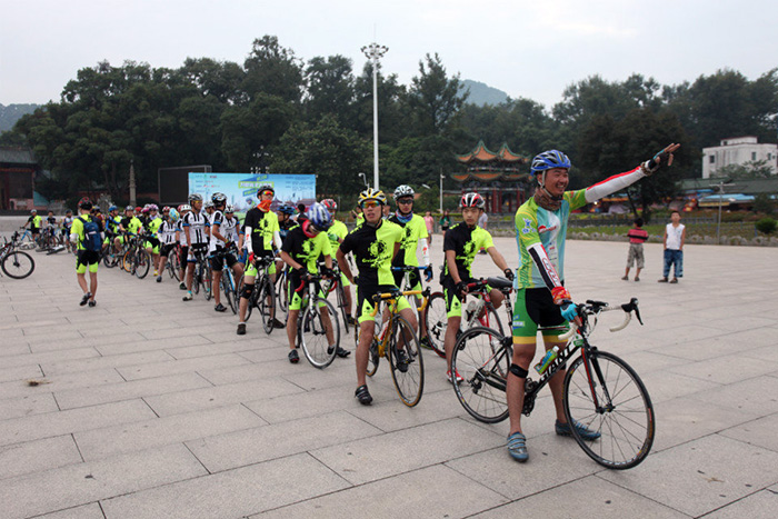 韶關(guān)南華寺門口,早上六點(diǎn),王衛(wèi)領(lǐng)隊(duì)準(zhǔn)備大穿越最后一天的騎行沖刺