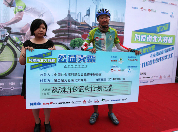 去年夏天,騎行者王衛(wèi)和他的“齊天下”公益團(tuán)隊(duì)用7天8小時(shí)32分完成了2357公里的“107南北穿越之旅”,并為貴州山區(qū)的孩子募集到了3萬頓的免費(fèi)午餐。