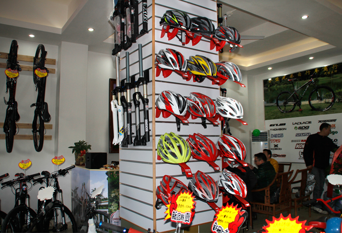店面積近百八十平方米,展示了LAPLACE全部整車和GUB的頭盔裝備等......還有所有的一些國內外知名品牌的零部件。