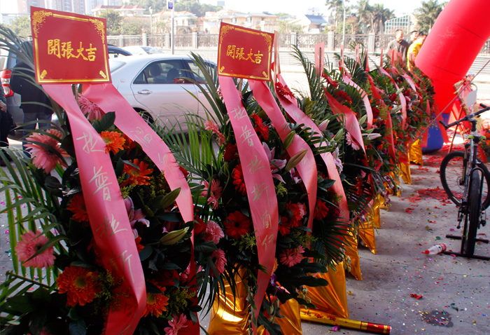 現場擺滿了各位合作伙伴以及嘉賓送來的花籃