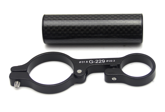 產品名稱:GUB G-229 燈架 材質:鋁合金支架、3K碳纖維管 規格:22.2*31.8 管長:70MM 重量約:54克 可選顏色:黑色 用途:可用于安裝電筒和碼表等。