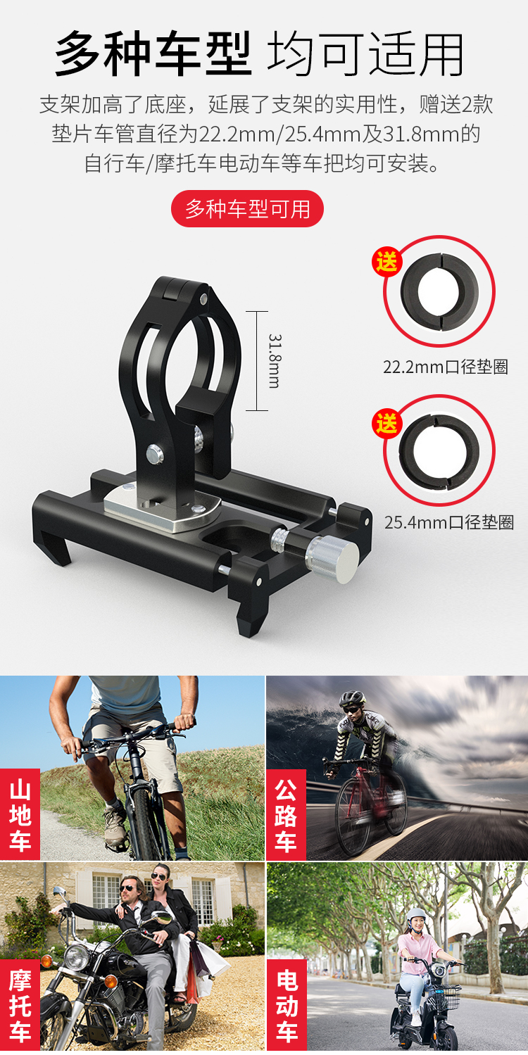 簡介:可簡單快捷安裝在車把或車頭,能讓您在外出騎行時輕松享受音樂,亦可導航為您指路,穩定牢固,四爪扣更易固定手機。