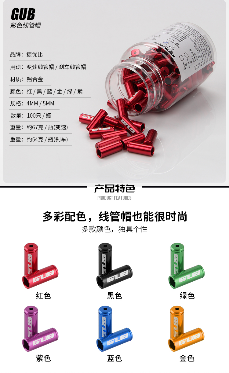 產品名稱:GUB 彩色鋁合金變速/剎車線管帽