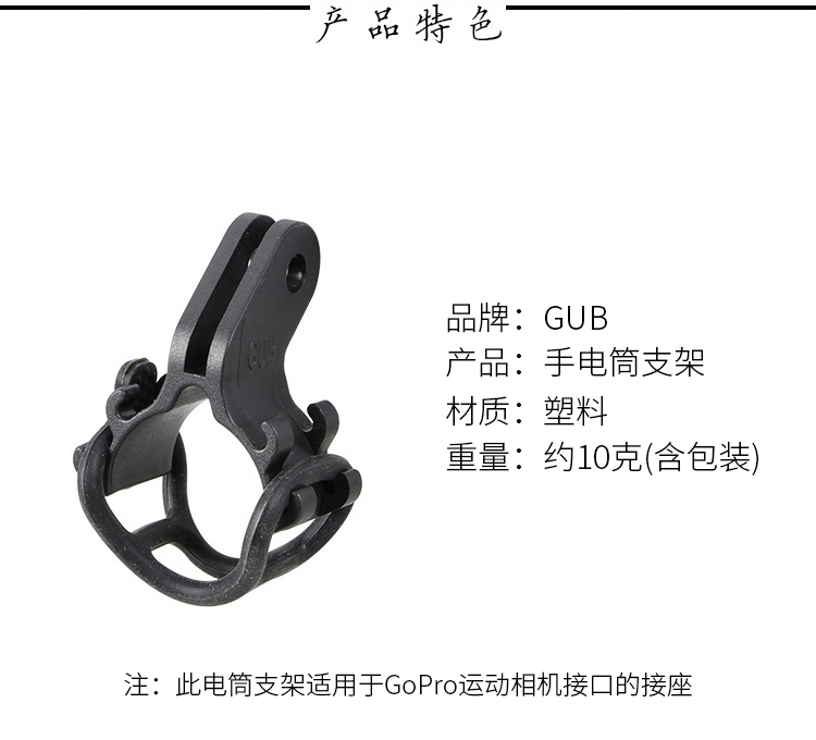 產品:GUB 自行車手電筒支架 材質:塑料(支架),硅膠(綁帶) 顏色:黑色 重量:約10克(毛重) 統一零售價:9.8元