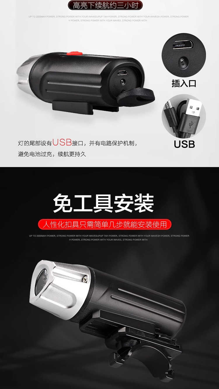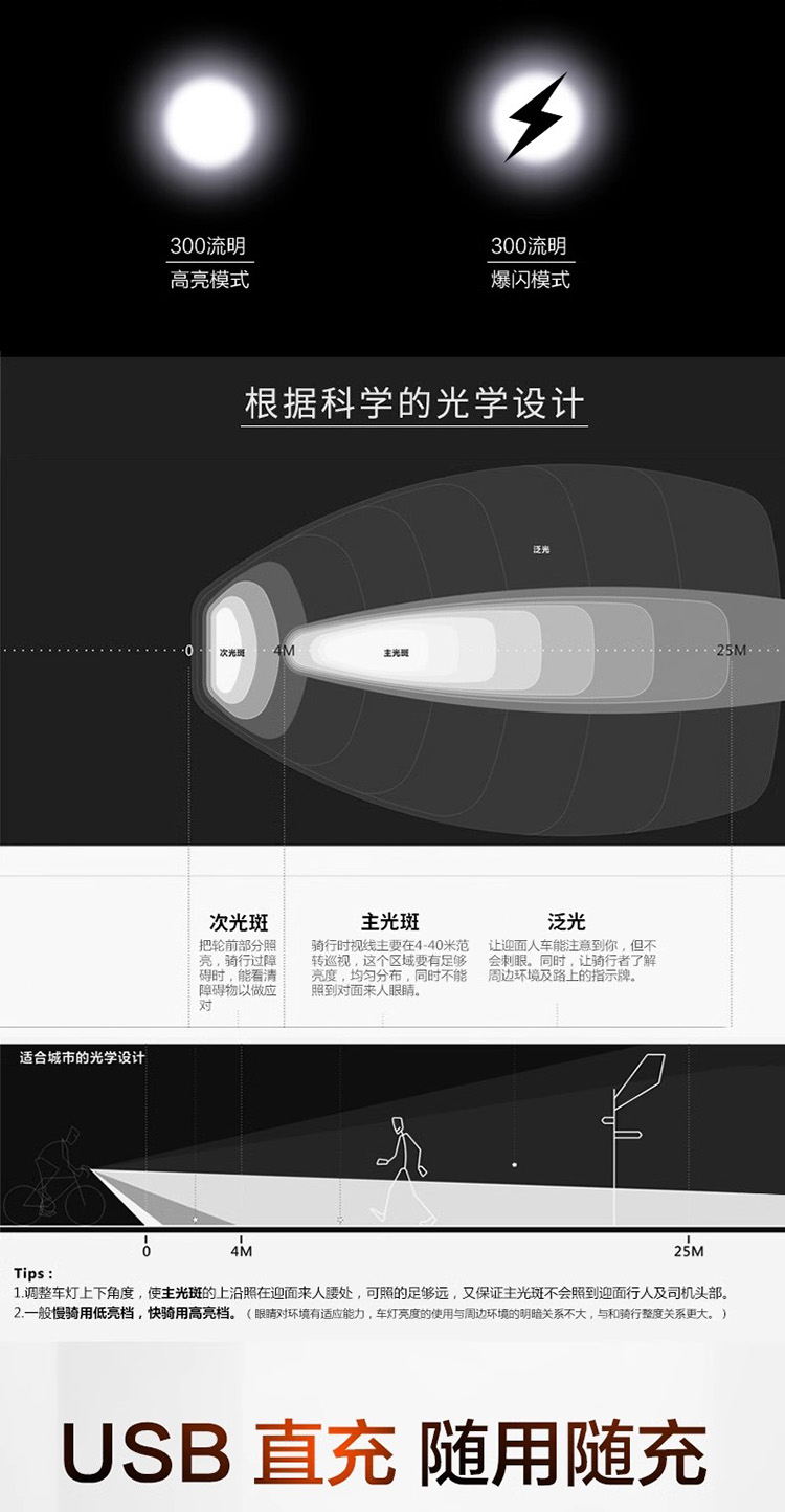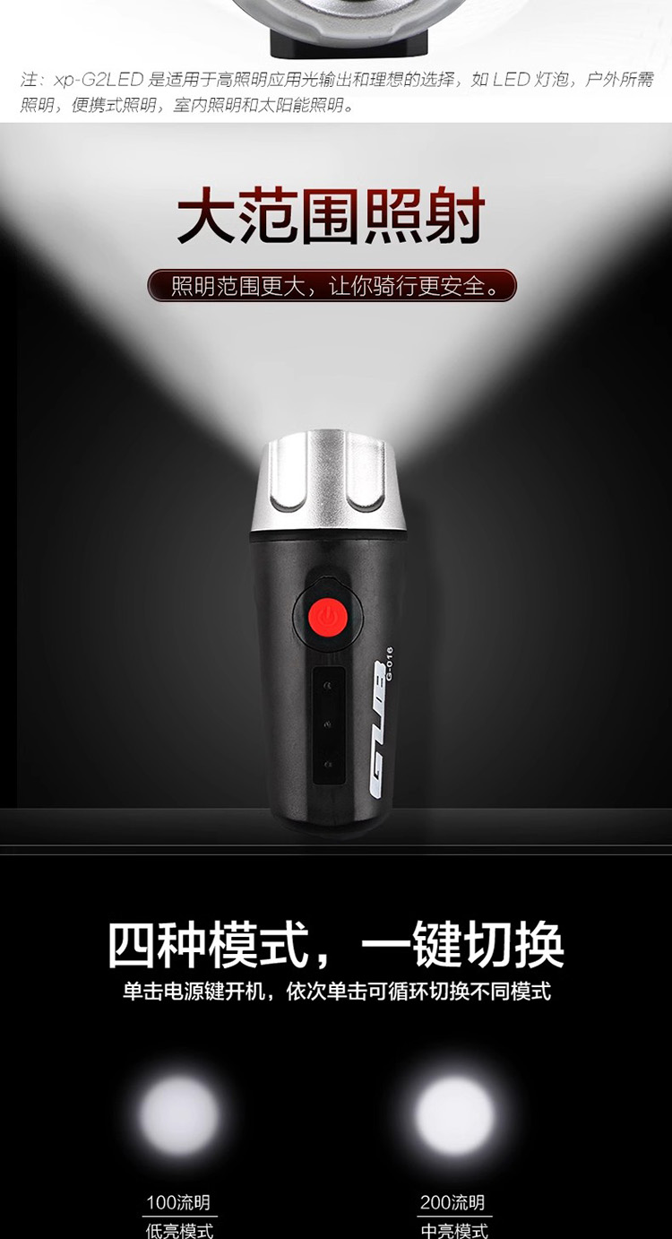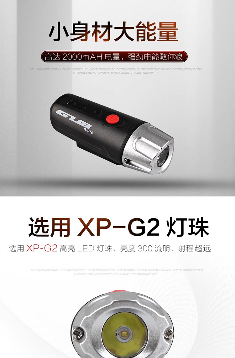 車前燈規格:XP-G2 LED燈珠,300流明,2000mAh鋰電池
