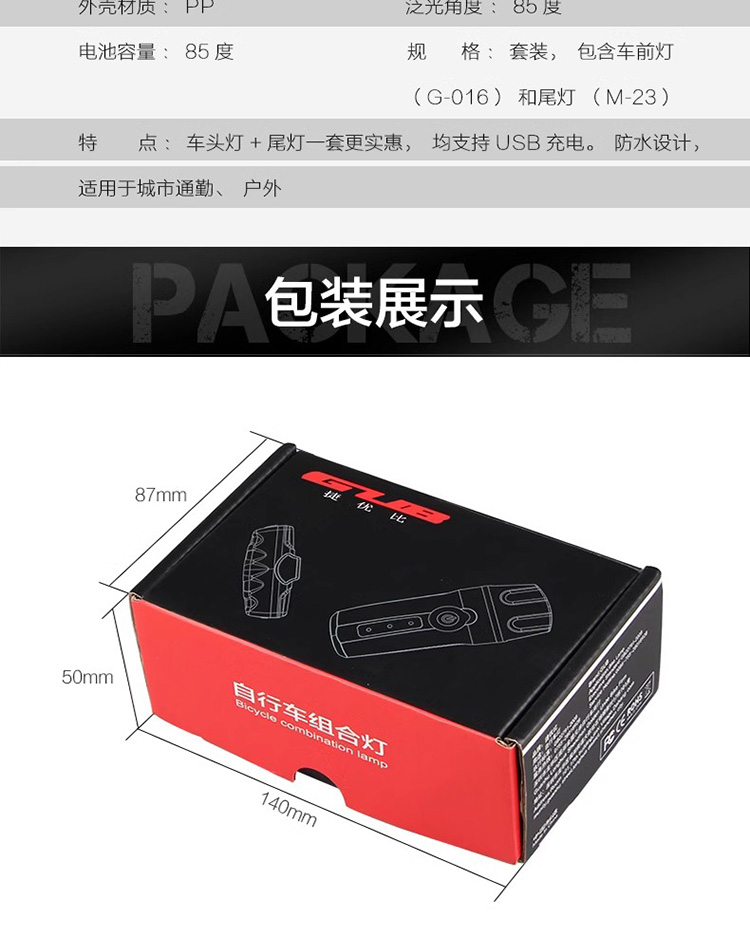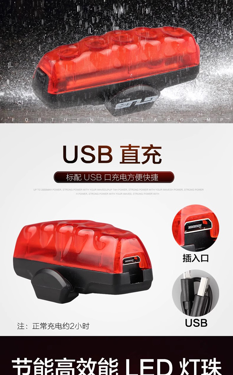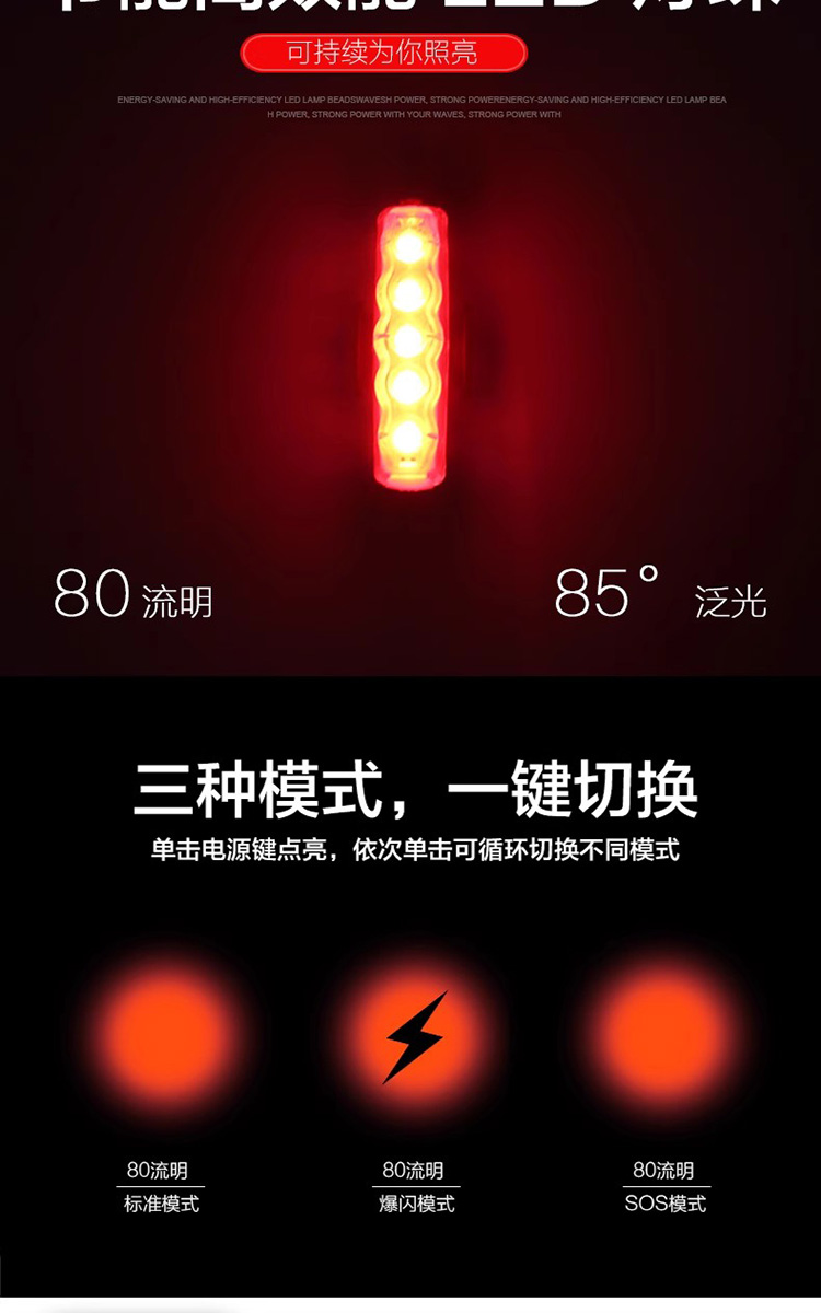 車尾燈規格:LED燈珠,80流明,300mAH電池