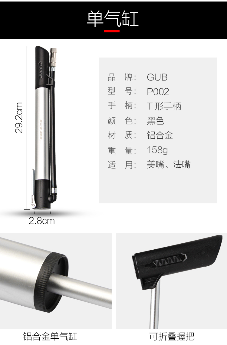 特點(diǎn):鋁合金氣缸,體積小不占地方,美嘴法嘴兼用,帶固定支架可安裝在車架上