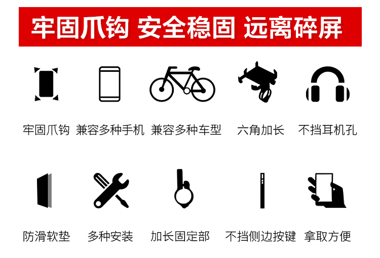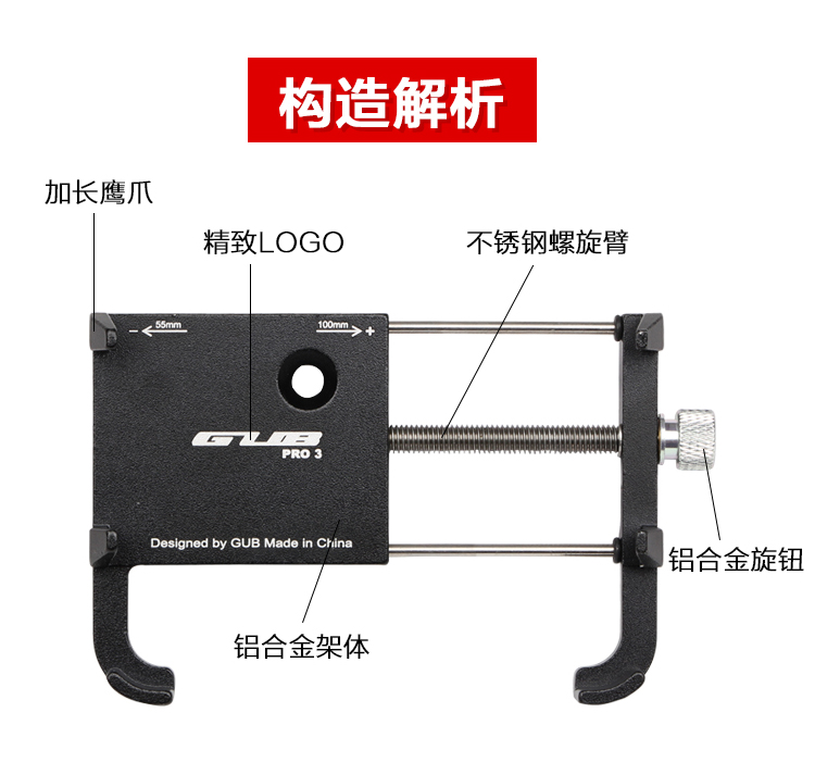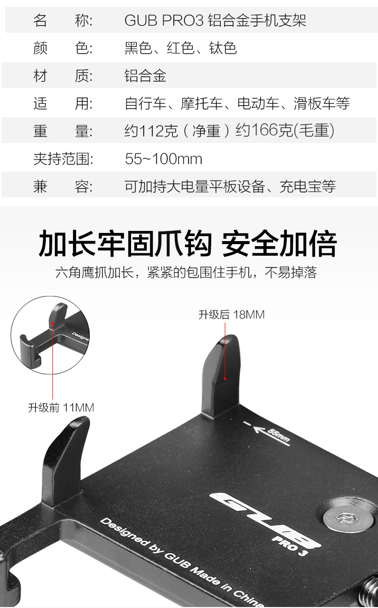 特點:全鋁合金架體,加長鷹爪式固定部,可夾充電寶