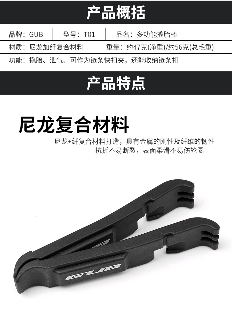 功能:撬胎、快扣夾、泄氣、收納鏈條扣