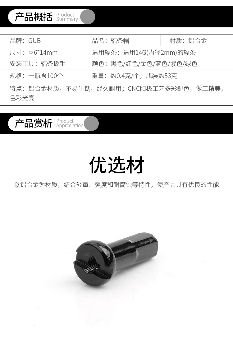 名稱:GUB 鋁合金輻條帽
