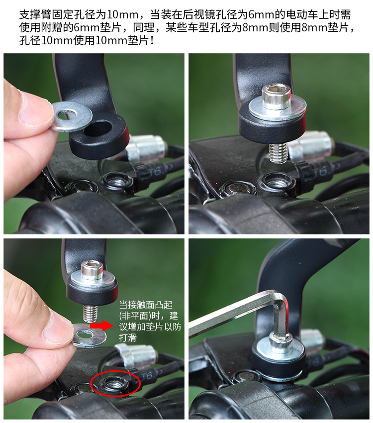 規格:支持55-100mm寬的設備,適合后視鏡孔位直徑10mm