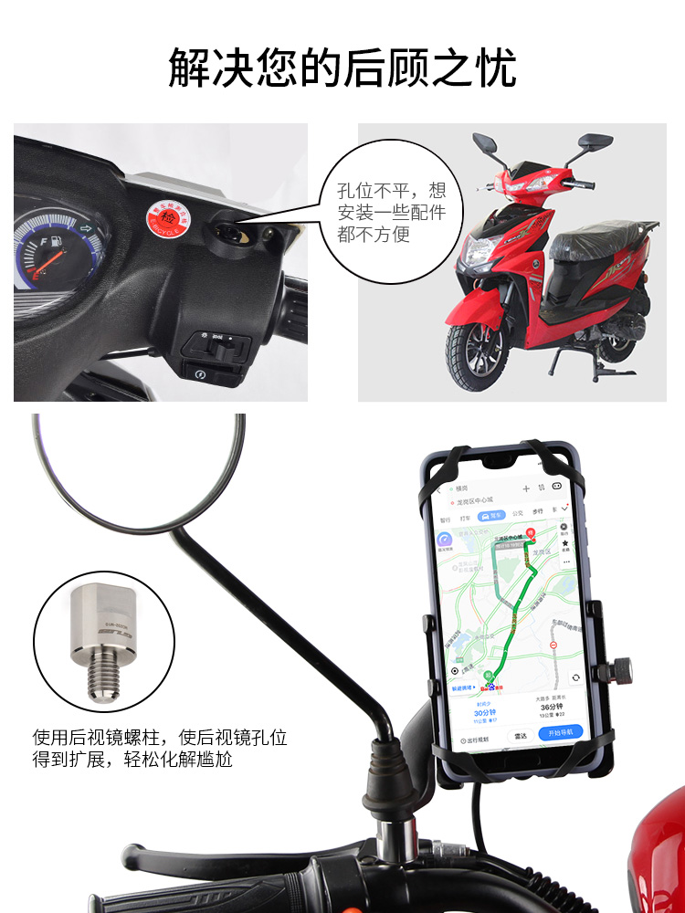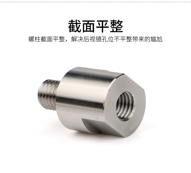 簡介:此配件為后視鏡輔助配件,采用不銹鋼材質,耐用不生銹,用于摩托車/電動車后視鏡孔位的擴展,起到墊高或更好適配的作用。