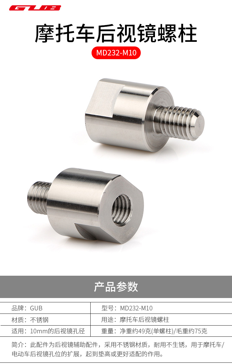 產品:GUB MD232-M10 摩托車后視鏡螺柱
