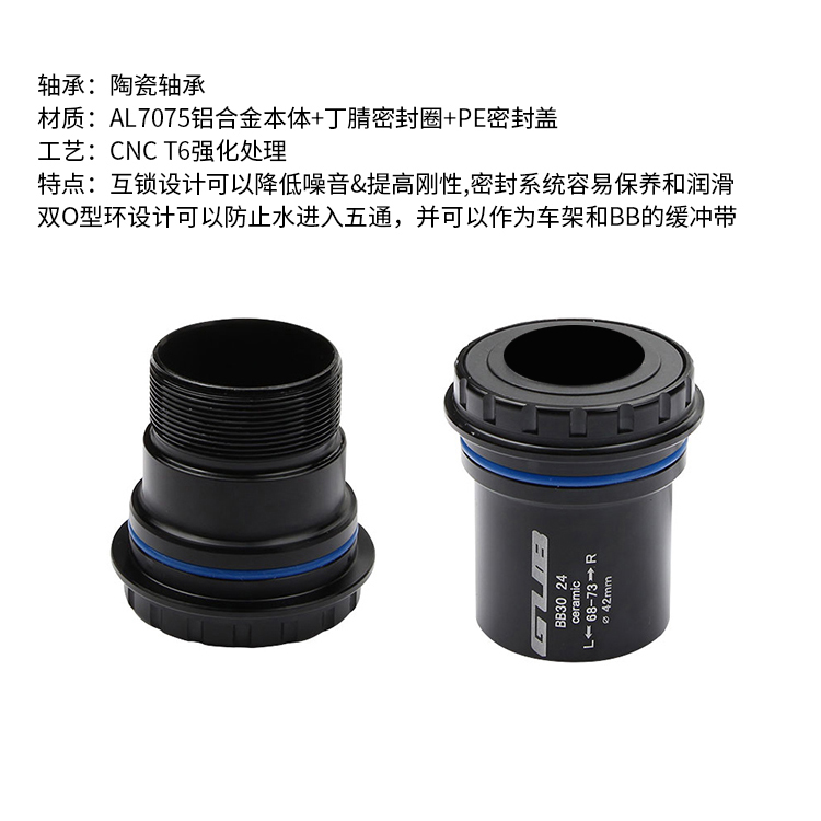 特點:互鎖設計可以降低噪音&提高剛性,密封系統容易保養和潤滑;雙O型環設計可以有效防止水進入五通,并可以作為車架和BB的緩沖帶