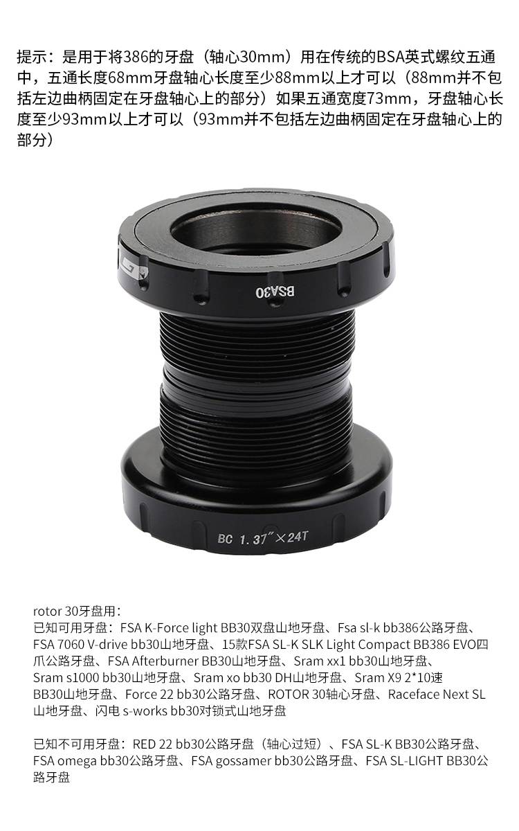 提示:是用于將386的牙盤(軸心30mm)用在傳統的BSA英式螺紋五通中,五通長度68mm