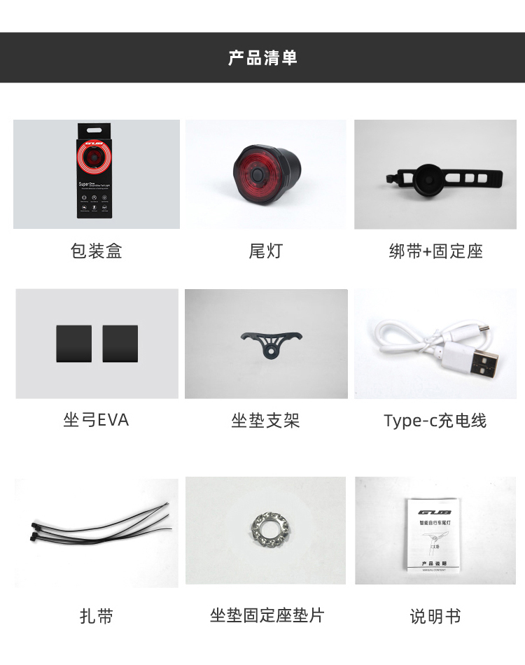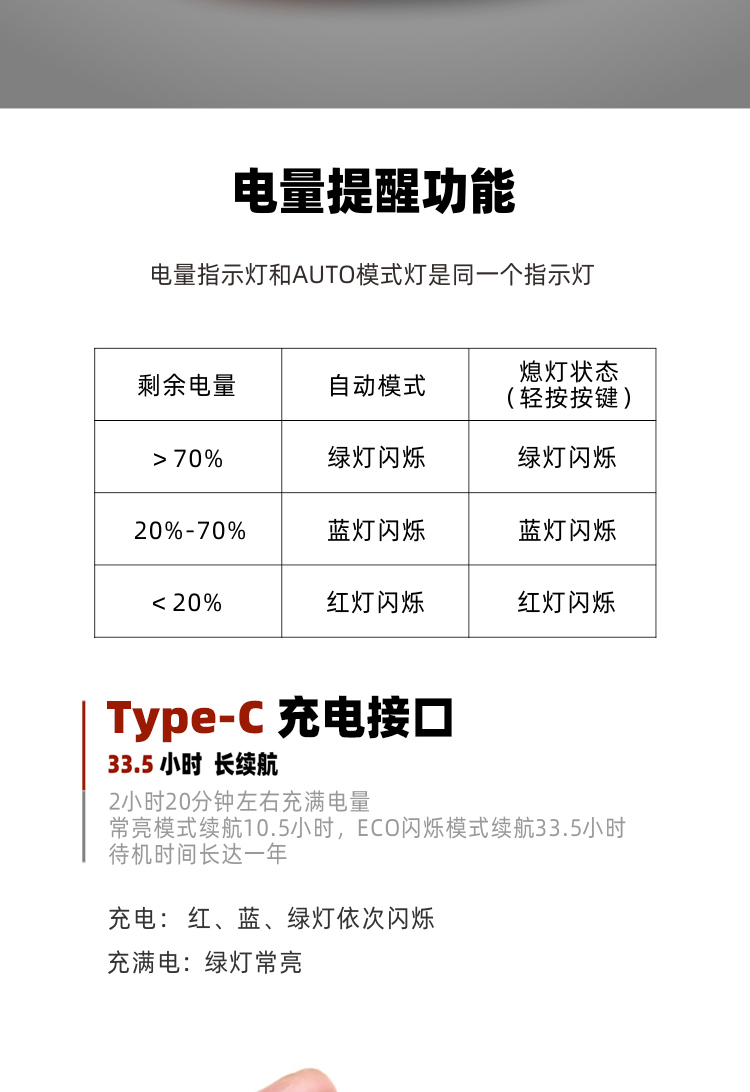 燈光模式:常亮/呼吸閃/慢閃/快閃/節奏閃/ECO快閃