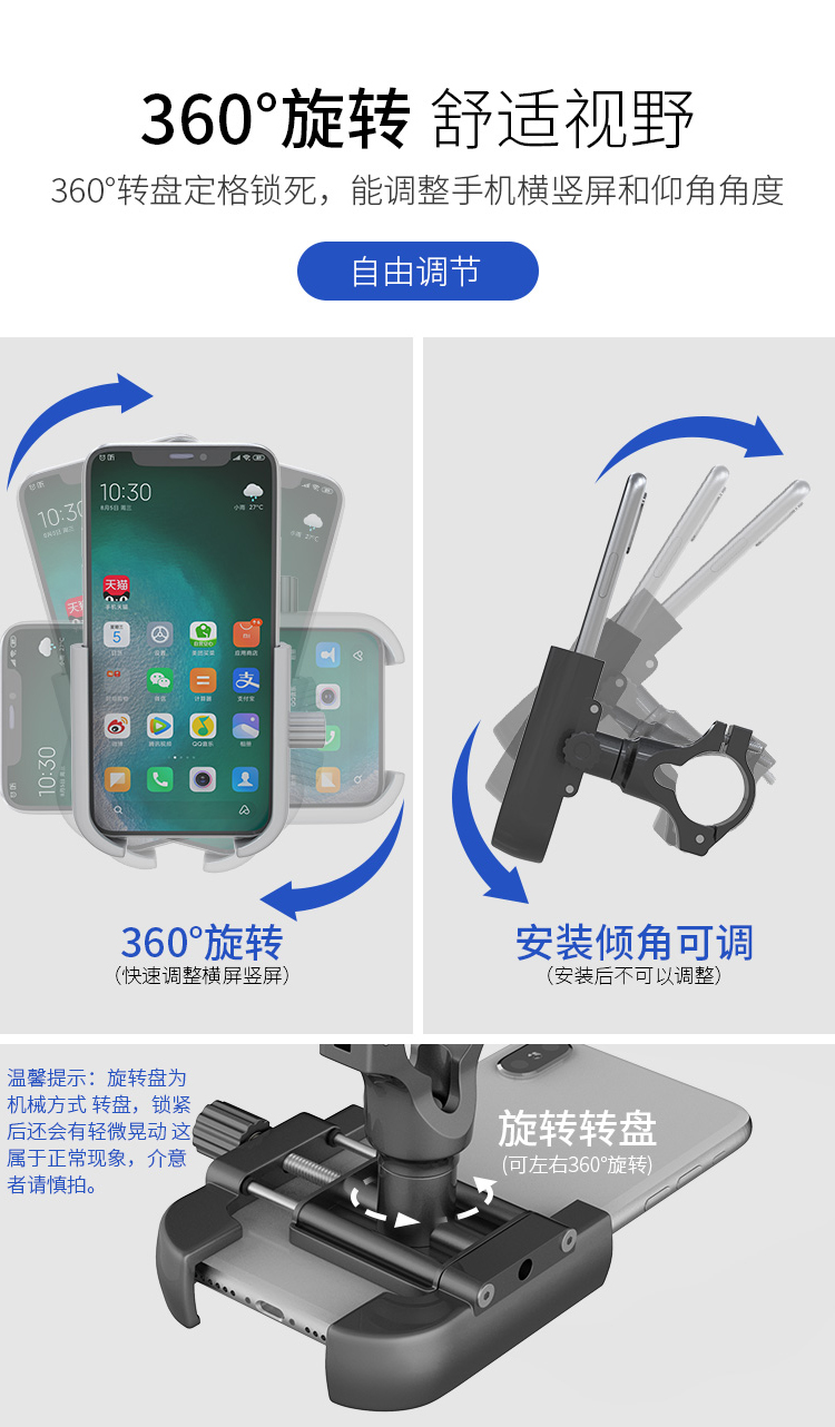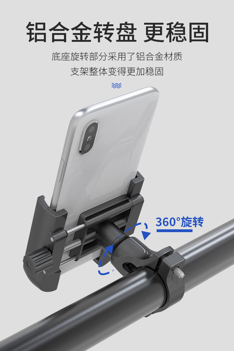特點(diǎn):全鋁合金架體,加厚加寬使用更安全。免工具平面360度旋轉(zhuǎn),高兼容性不挑手機(jī)型號(hào),自行車、電動(dòng)車等都可使用!