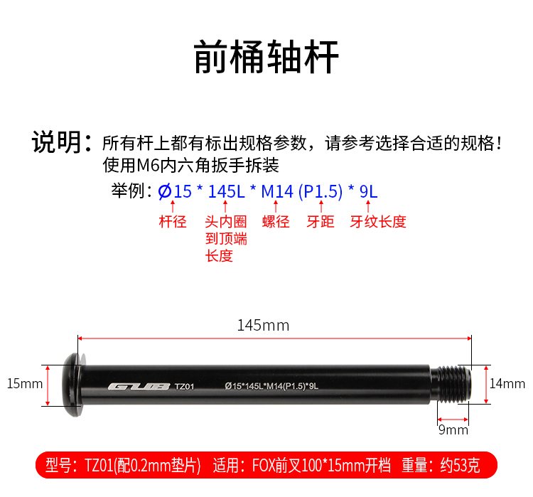 說(shuō)明:請(qǐng)根據(jù)前叉和車架尺寸選擇合適的桶軸桿!