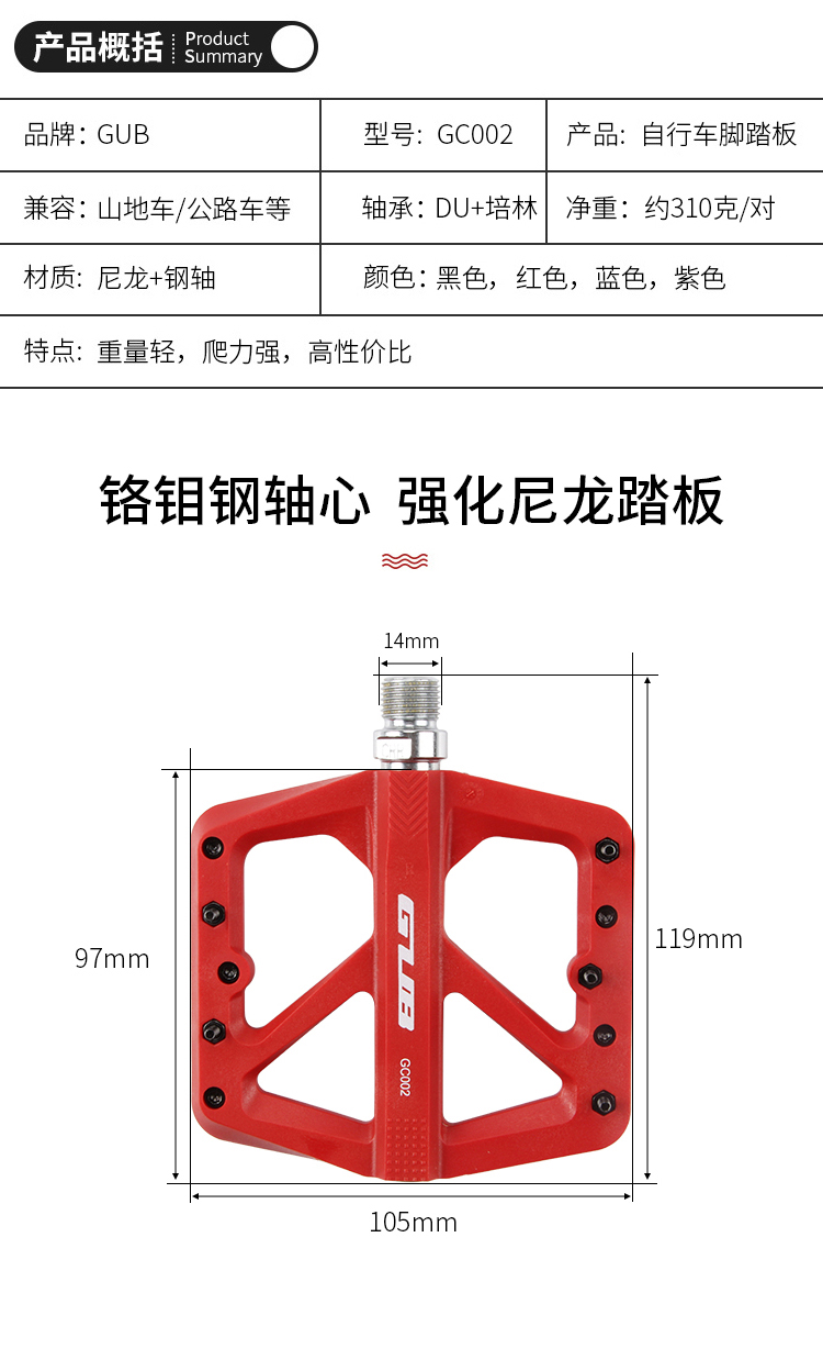 材質:尼龍腳踏主體+鉻鉬鋼軸心