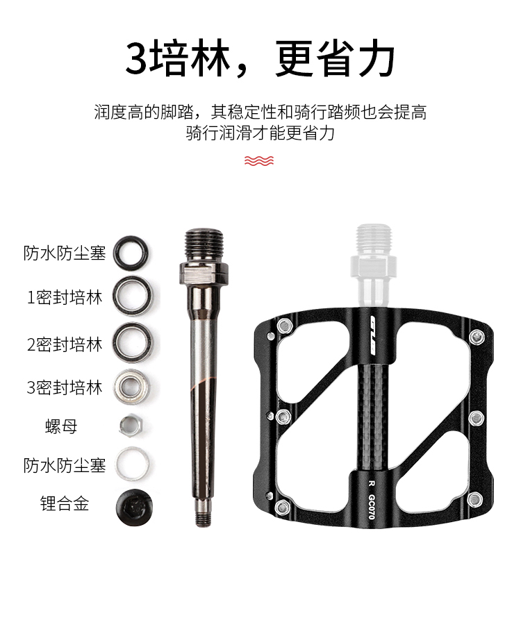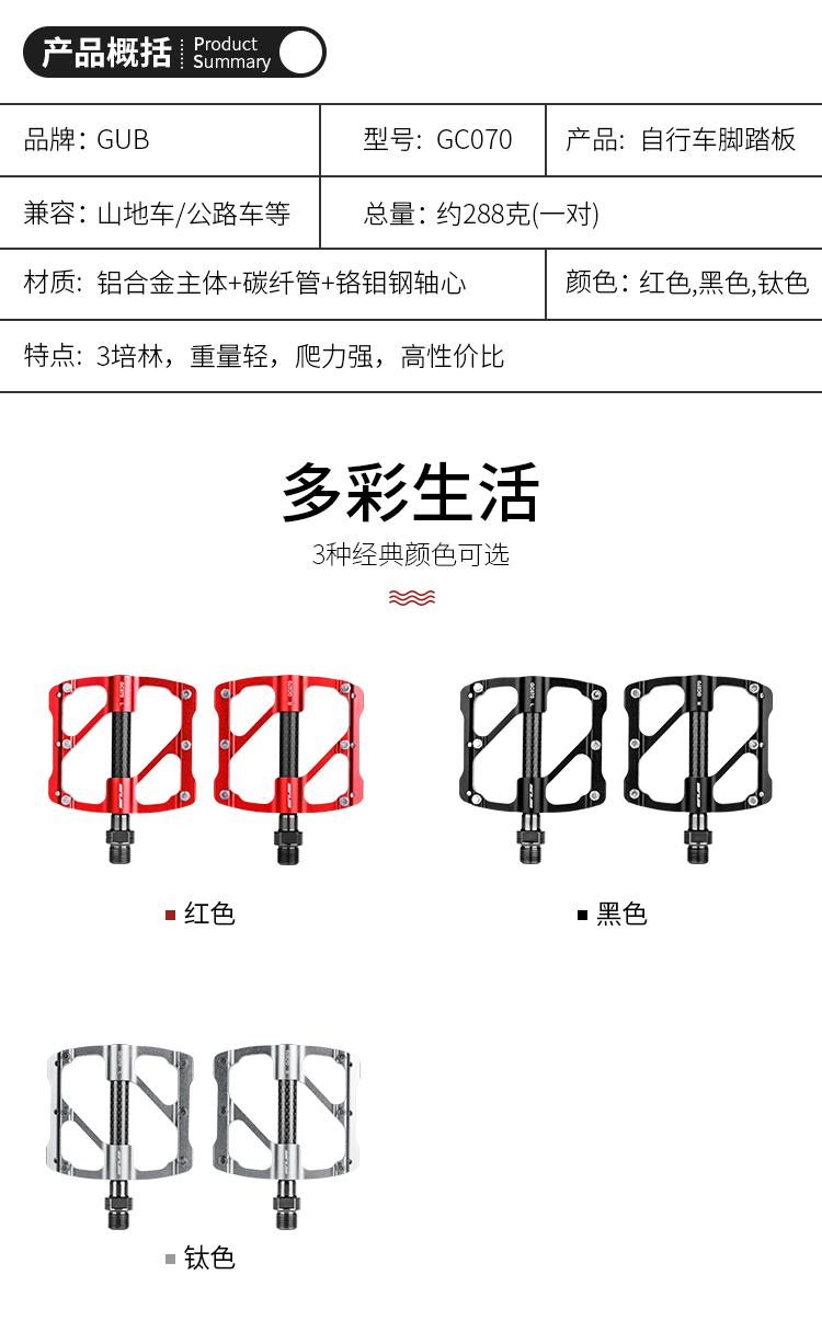 材質:鋁合金腳踏主體+碳纖維軸套+鉻鉬鋼軸心