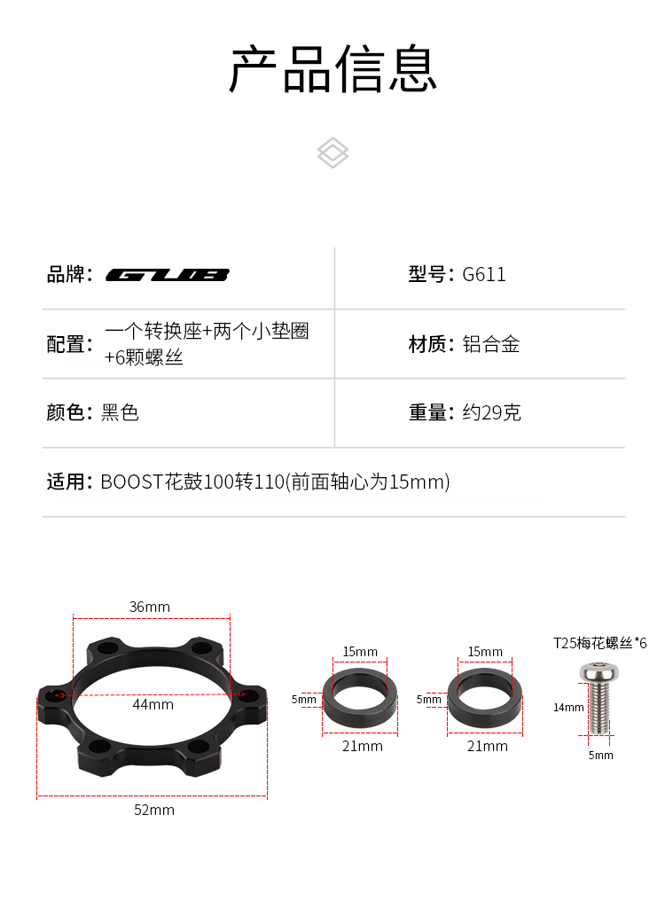 適用于:BOOST花鼓100轉110(前面軸心為15mm)