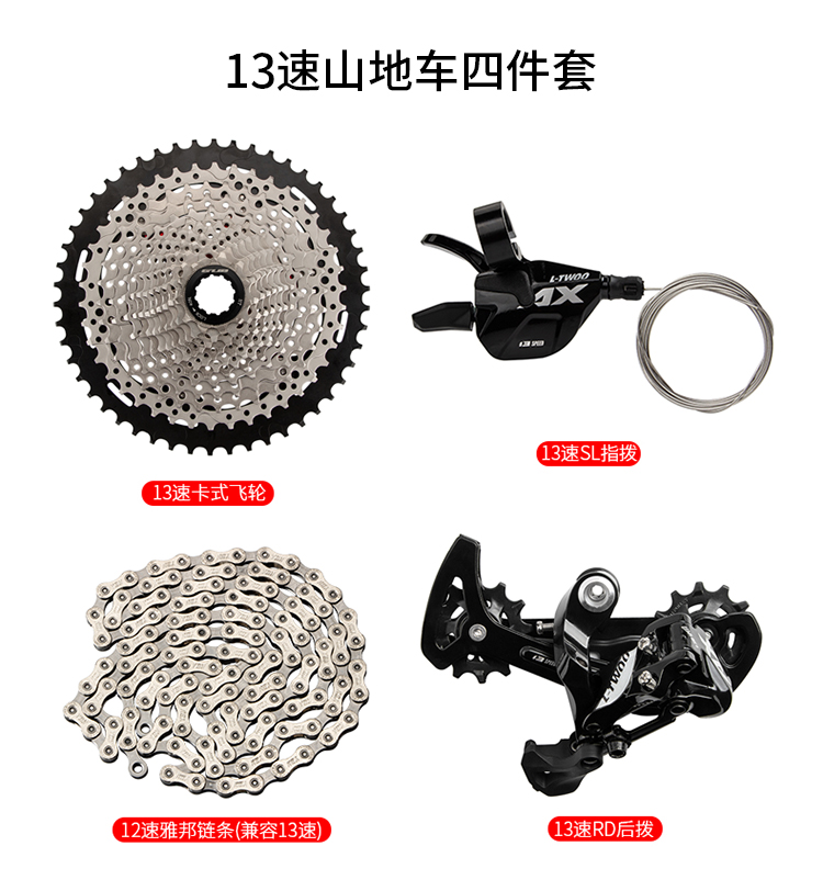 后撥:13速加長腿直裝后撥,影子后撥設計,加大軸承導輪,最大兼容52T飛輪