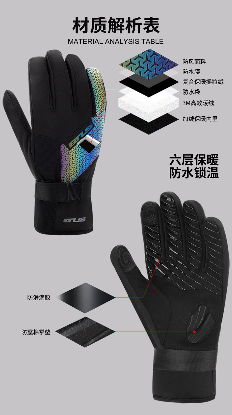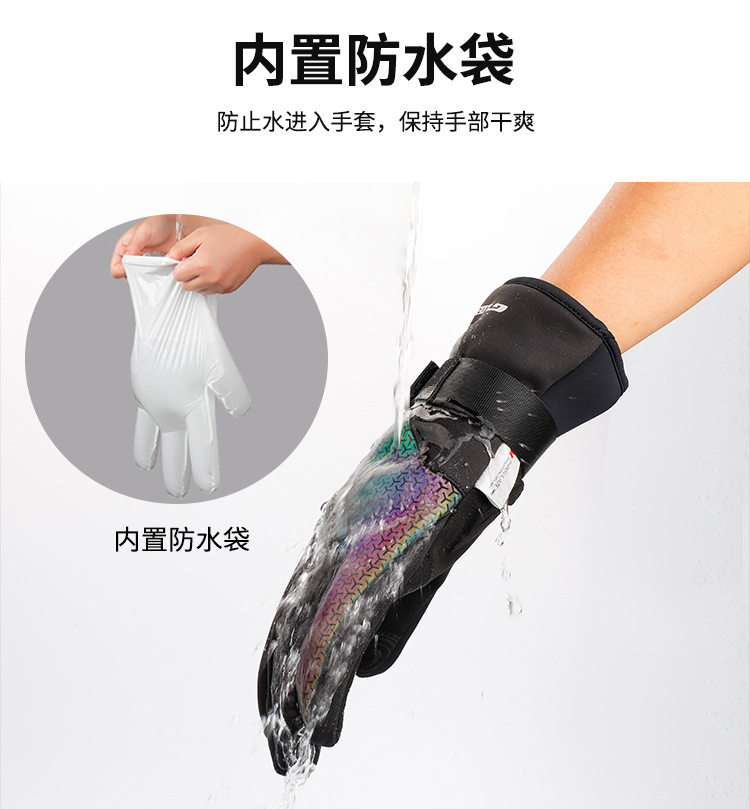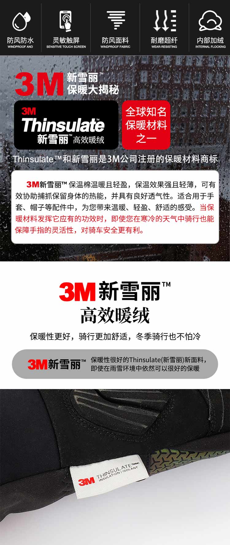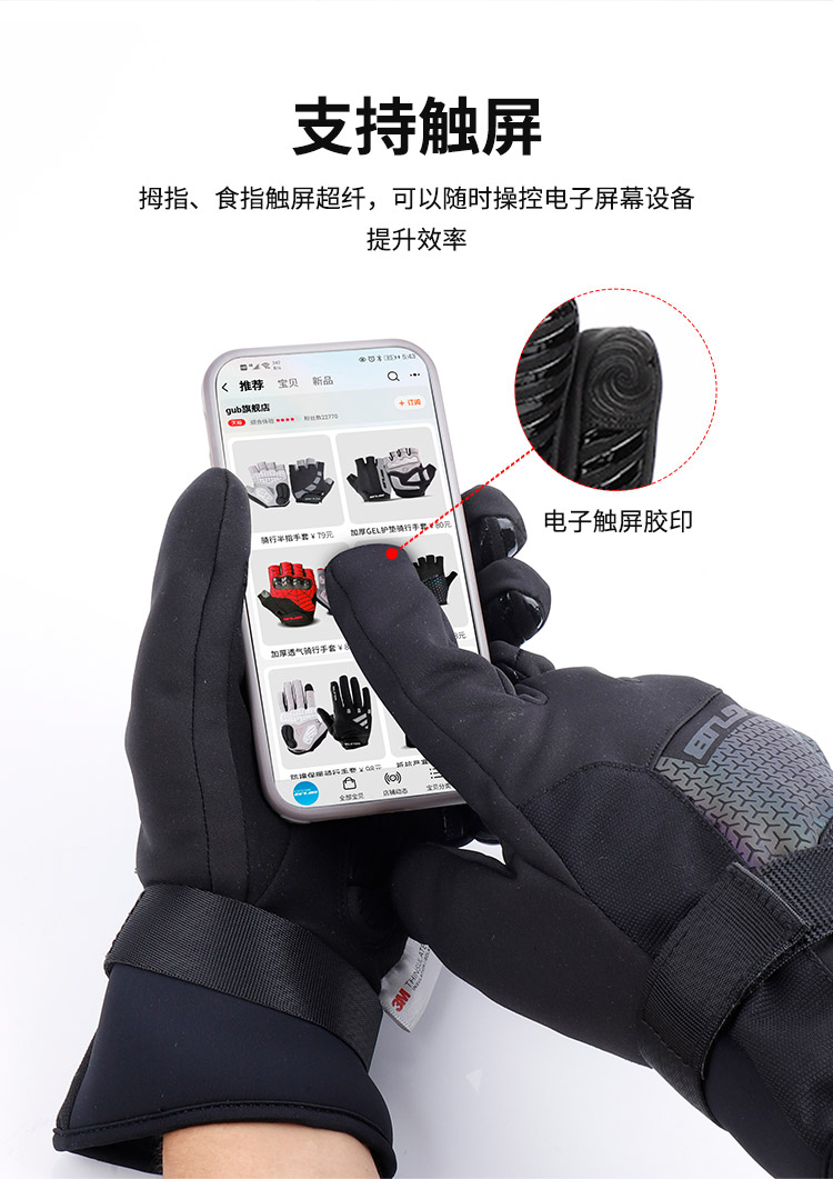 材質:手背防風復合面料(內置防水袋),手掌超纖面料