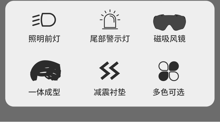 特點:免安裝磁鐵吸附風鏡設計,標配前燈及后尾燈,做工精致,優良品質!