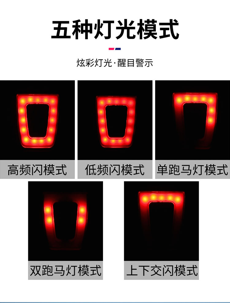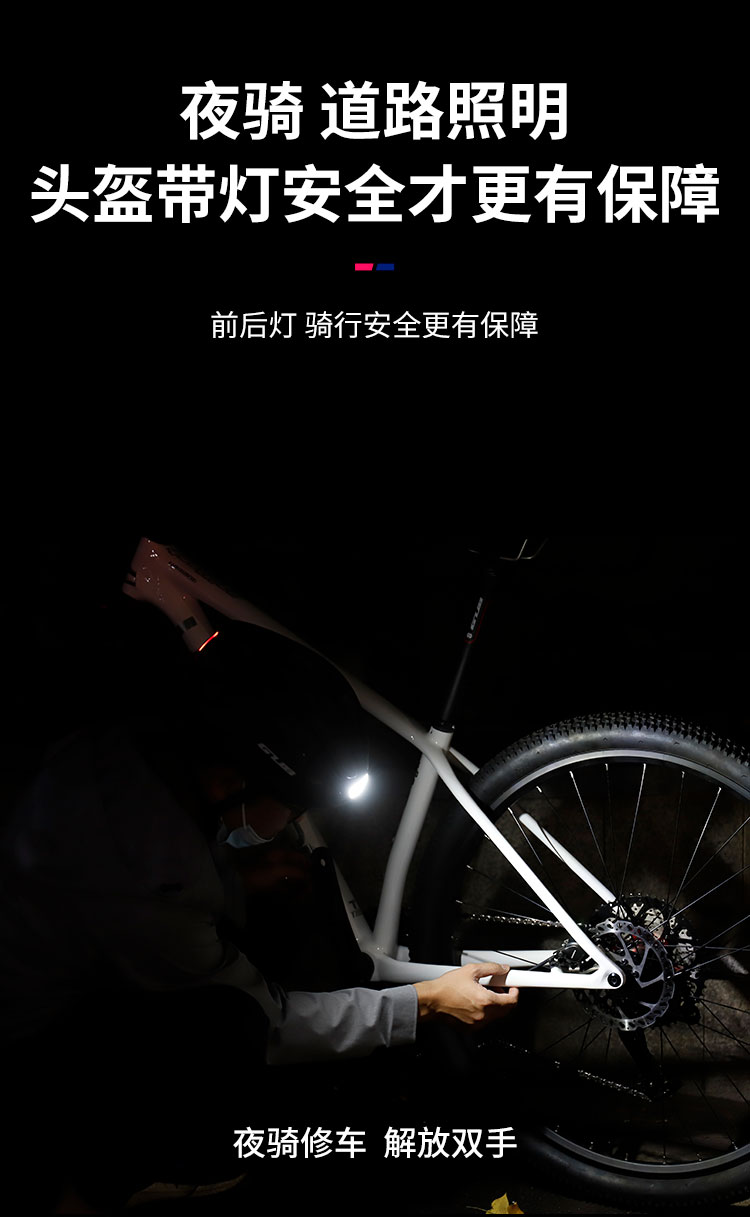 續航時間:前后一起約3小時 ,單燈使用約6小時雙擊控制前燈開關,單擊控制尾燈.