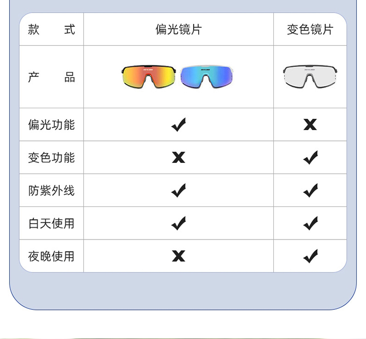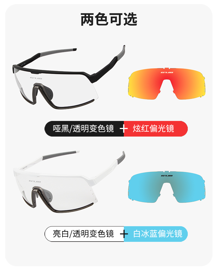 顏色:?jiǎn)『?透明變色+炫紅偏光、亮白/透明變色+白冰藍(lán)偏光