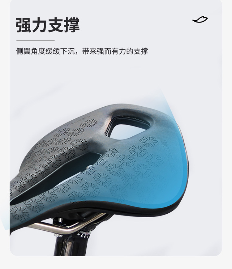 特色:超纖皮表面耐磨有質感;鉻鉬鋼中空軌道強度高;坐墊中央設空槽,不悶熱、低壓迫