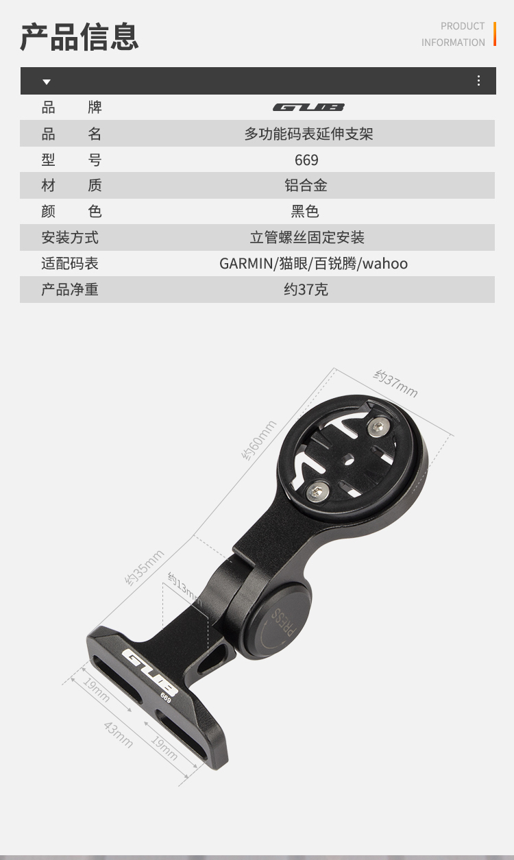 產品:GUB 669 鋁合金碼表架