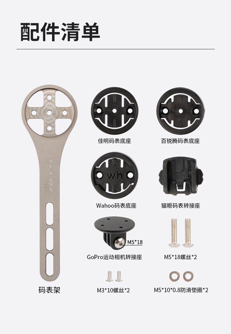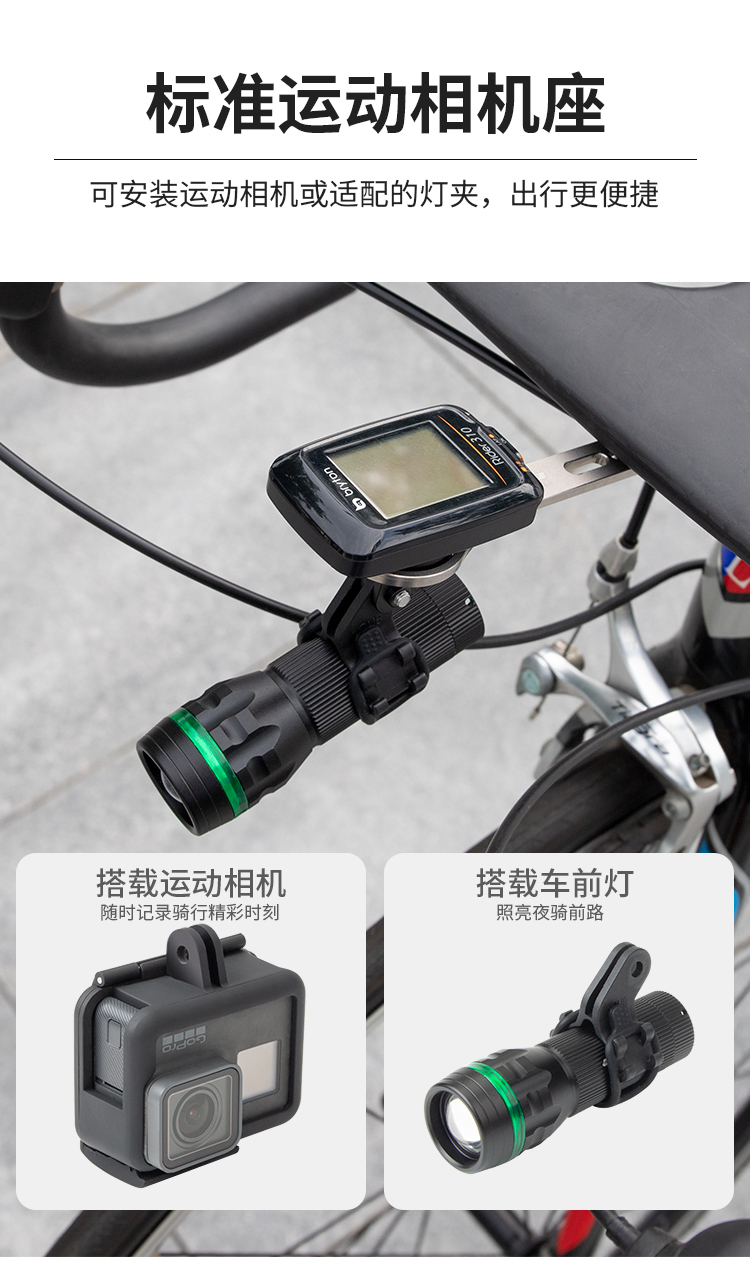 配置:配運動相機轉接座,wahoo、佳明、百銳騰和貓眼碼表接座