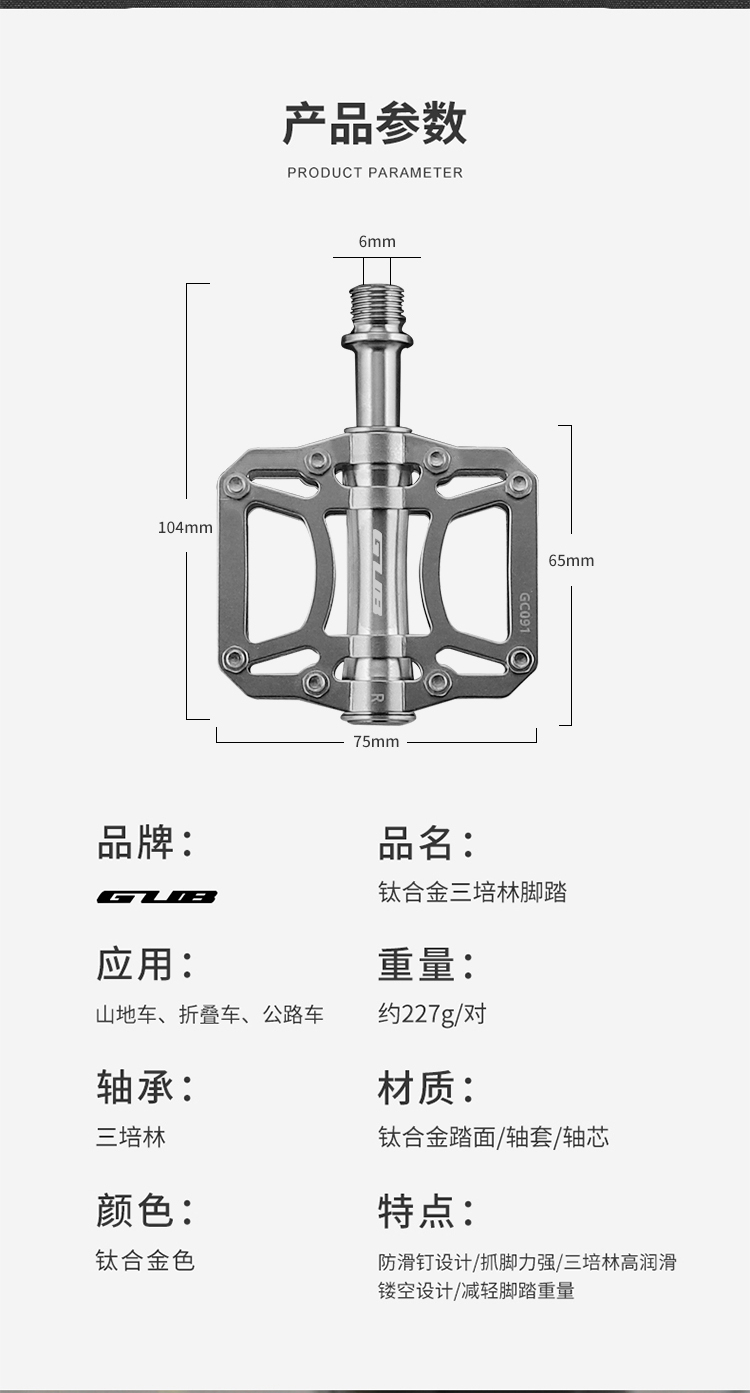 材質:鈦合金踏板+鈦合金軸套+鈦合金軸芯