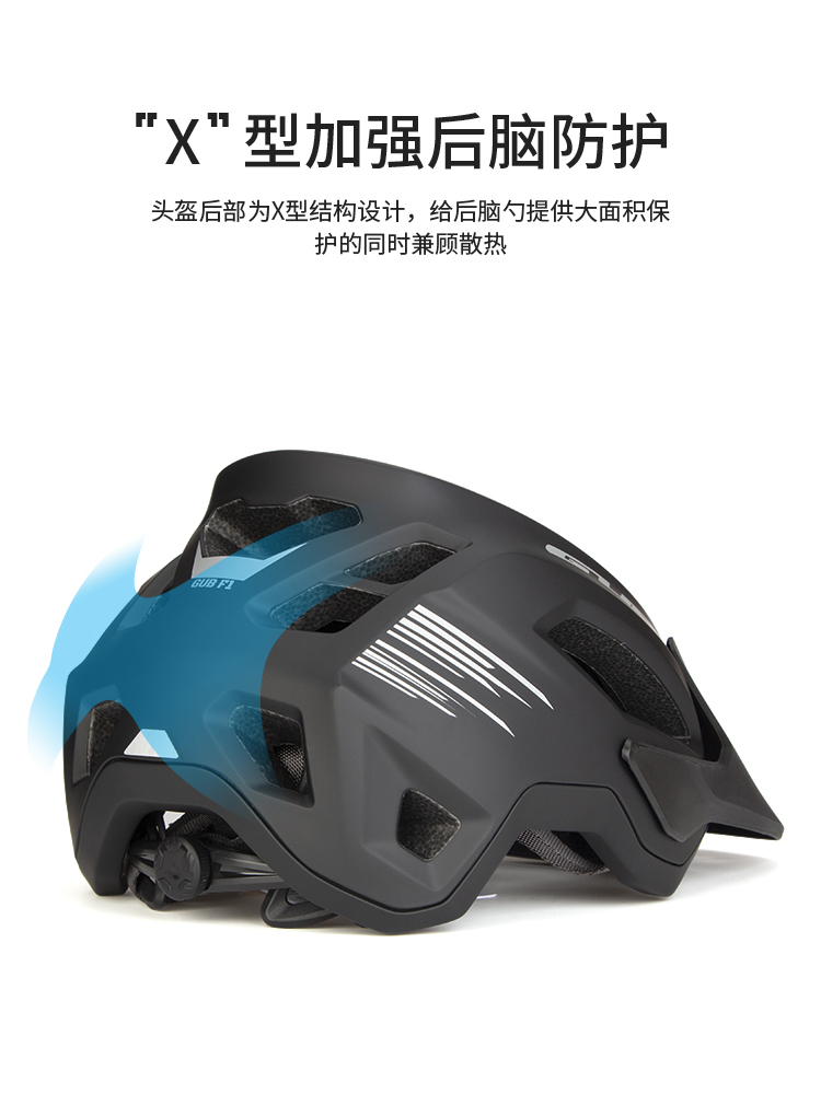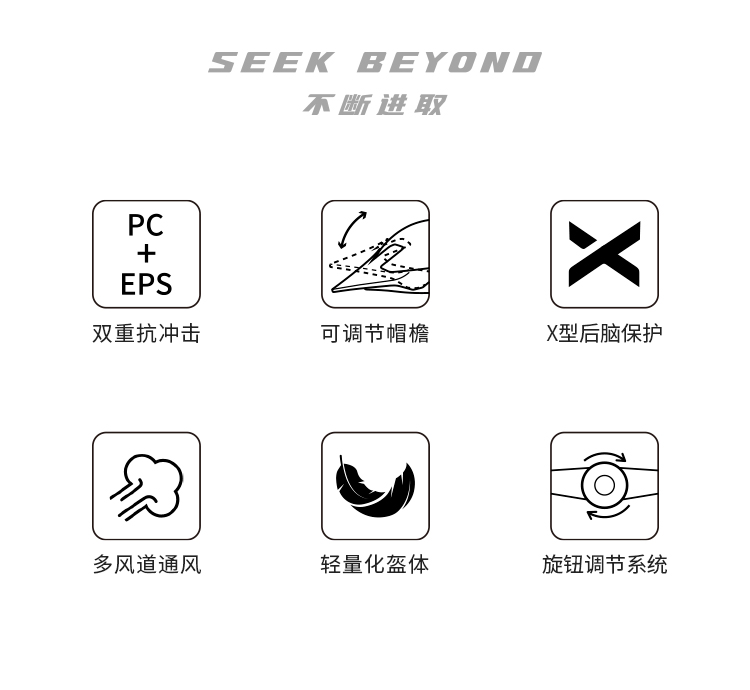 特點:PC+EPS雙重防護,輕量化盔體,多風道透氣,可調節帽檐,X型后腦勺加強防護設計。
