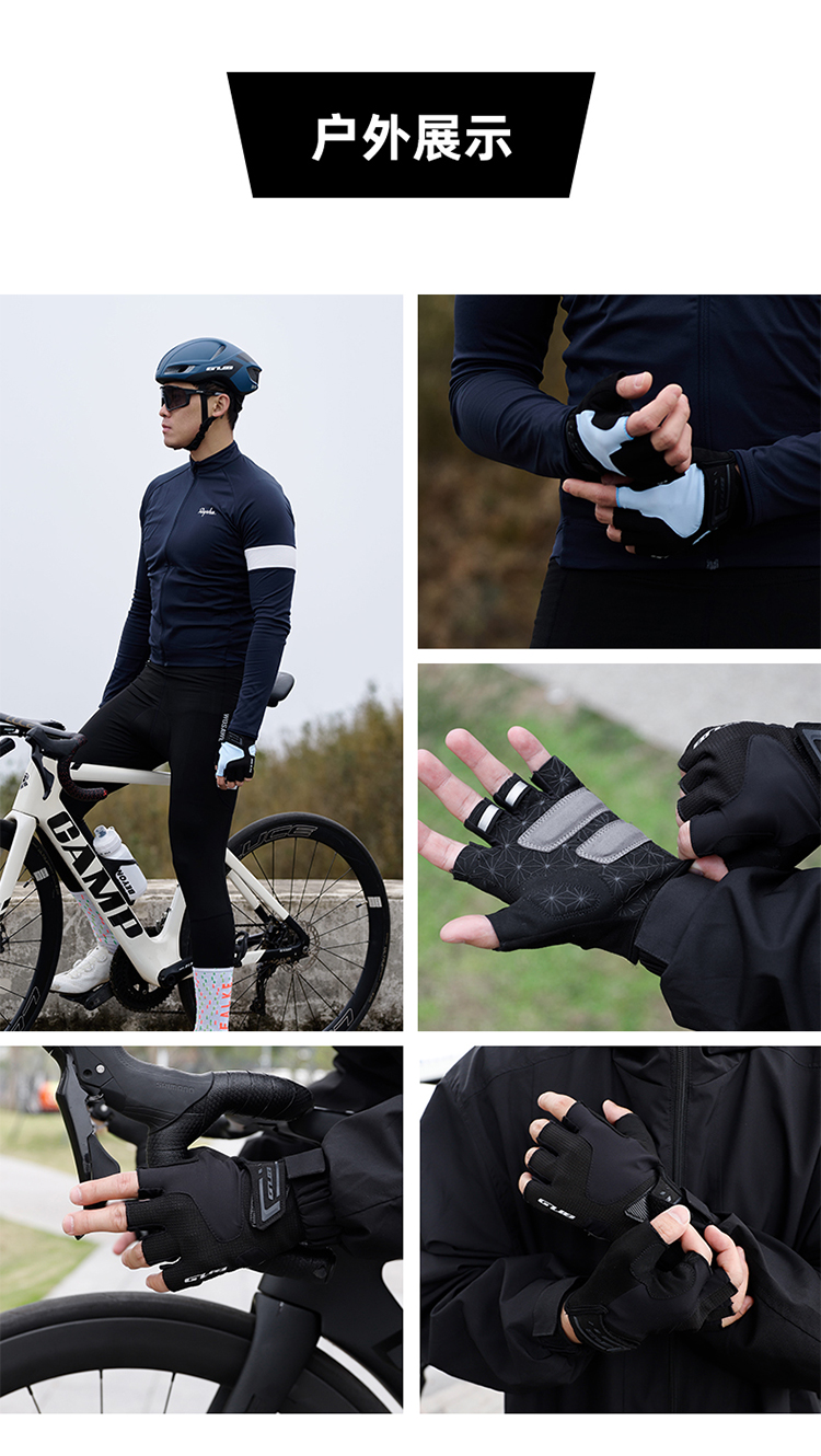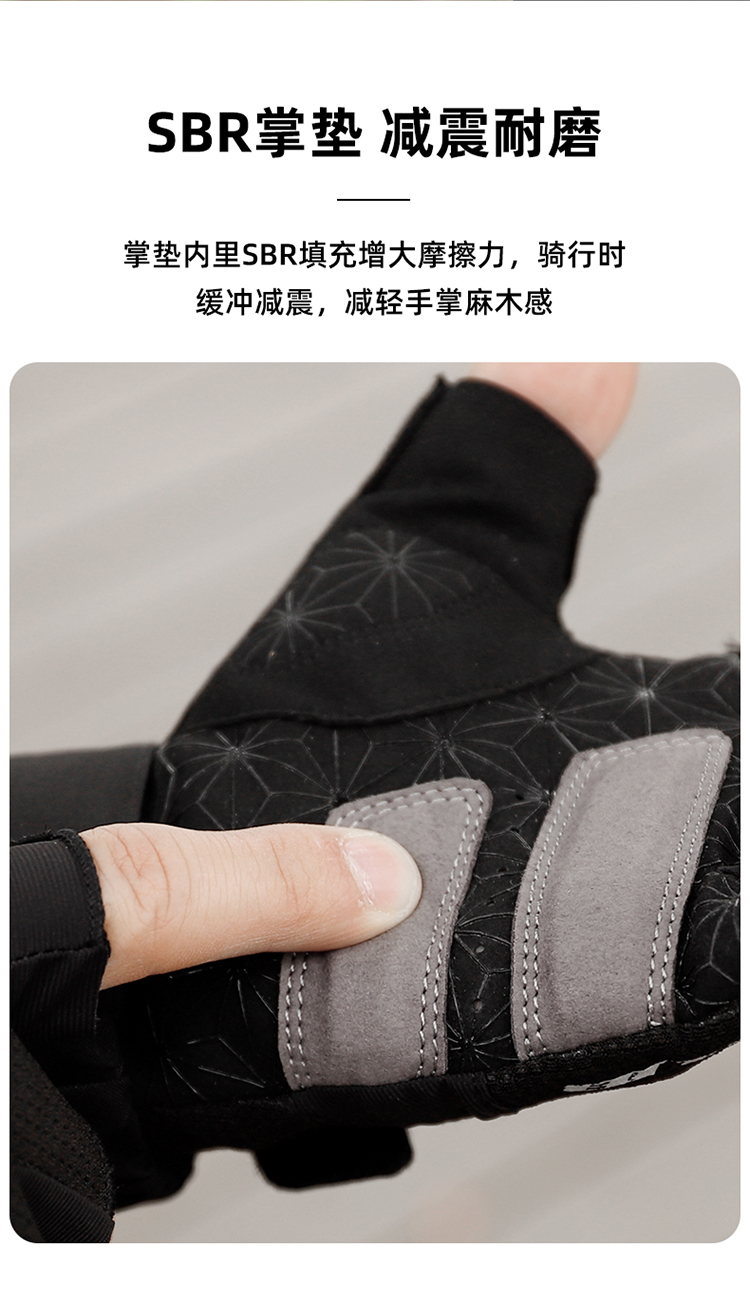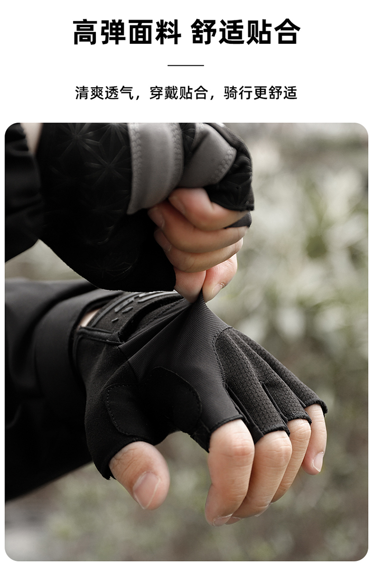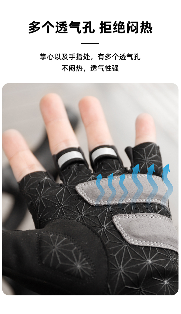 特點:簡約設計、貼合手掌,手背高彈透氣面料,手掌大面積硅膠印刷條紋,防滑效果好