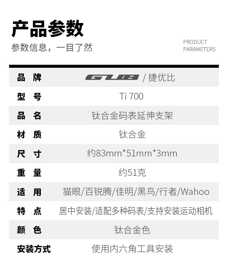 產品:GUB Ti 700 鈦合金碼表架