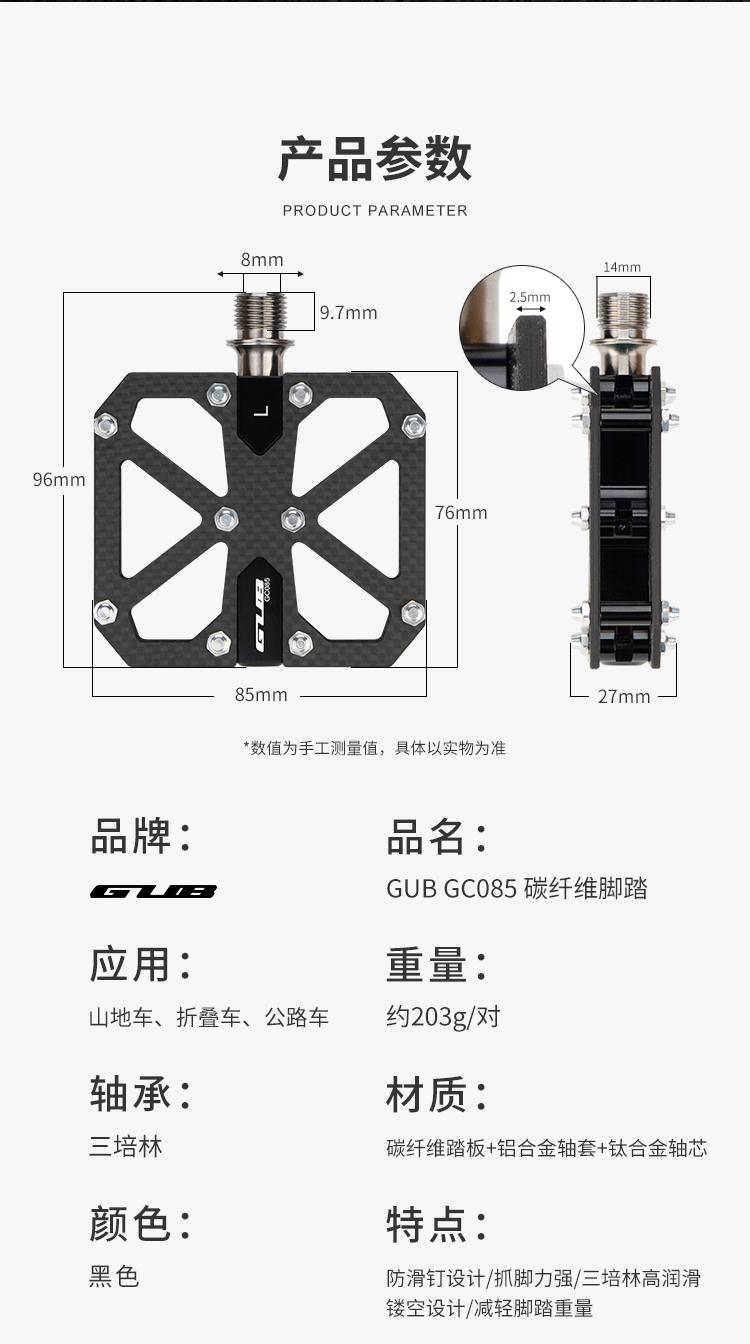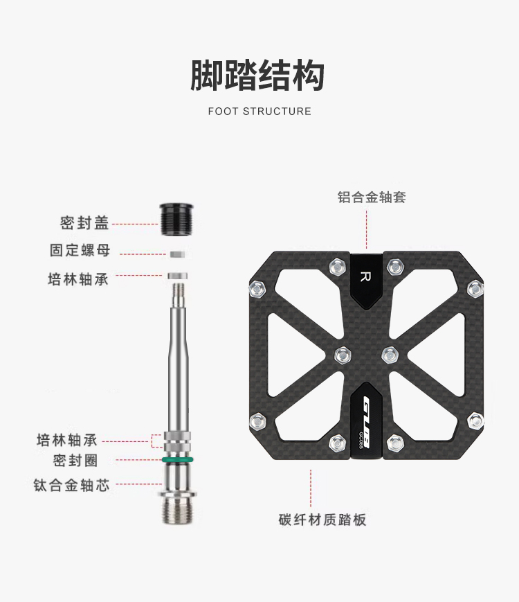 材質:碳纖維踏板+鋁合金軸套+鈦合金軸芯