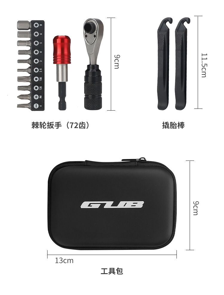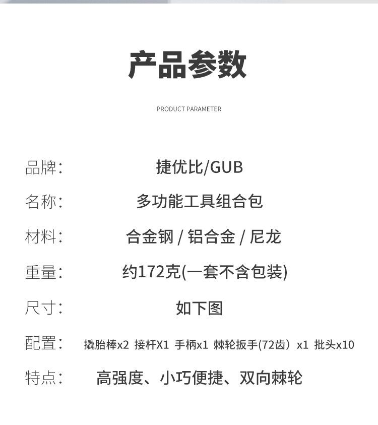 包含工具:手柄、棘輪扳手、連接桿、撬胎棒、批頭