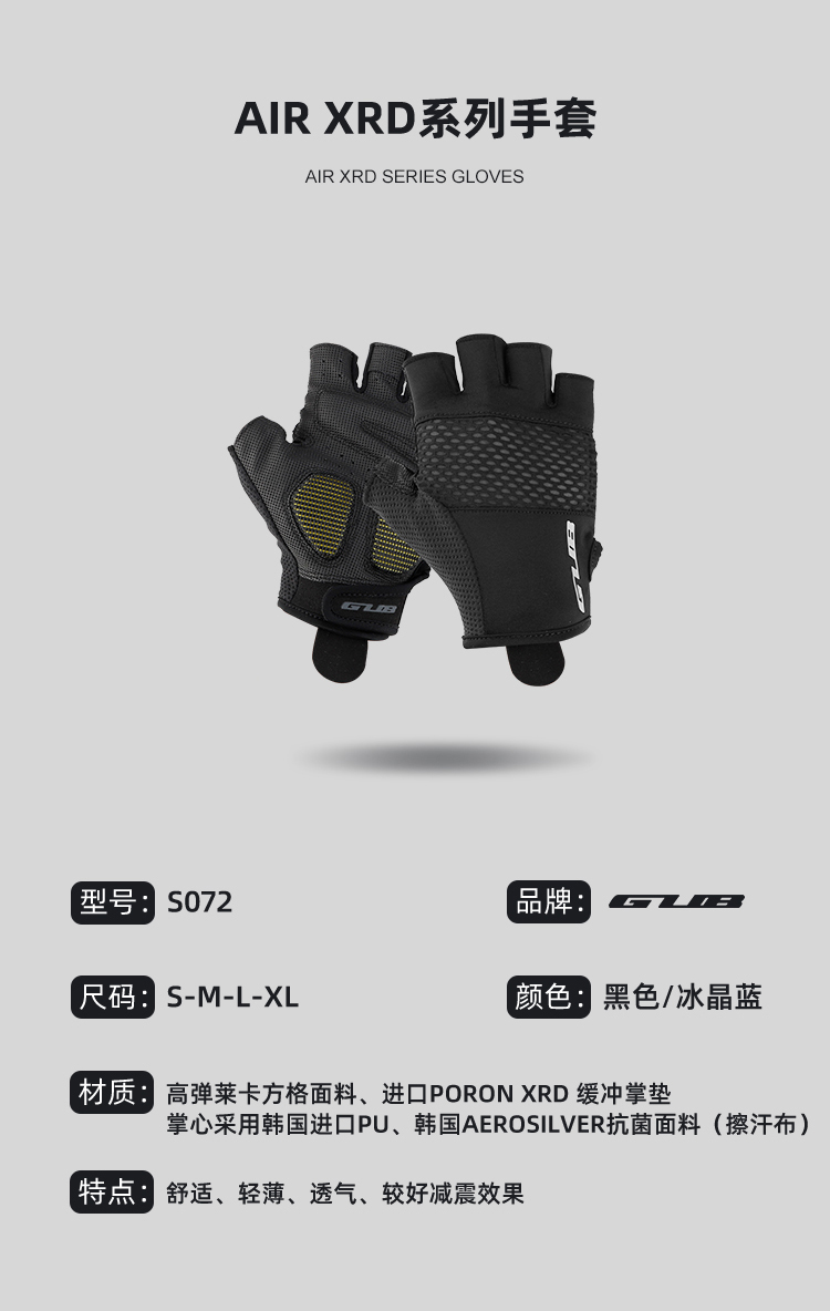 材質:高彈萊卡方格面料、進口PORON XRD 緩沖掌墊、掌心采用韓國進口PU、韓國Aerosilver抗菌面料(擦汗布)