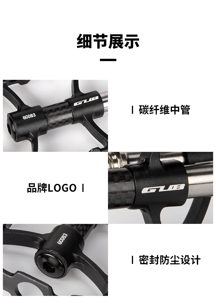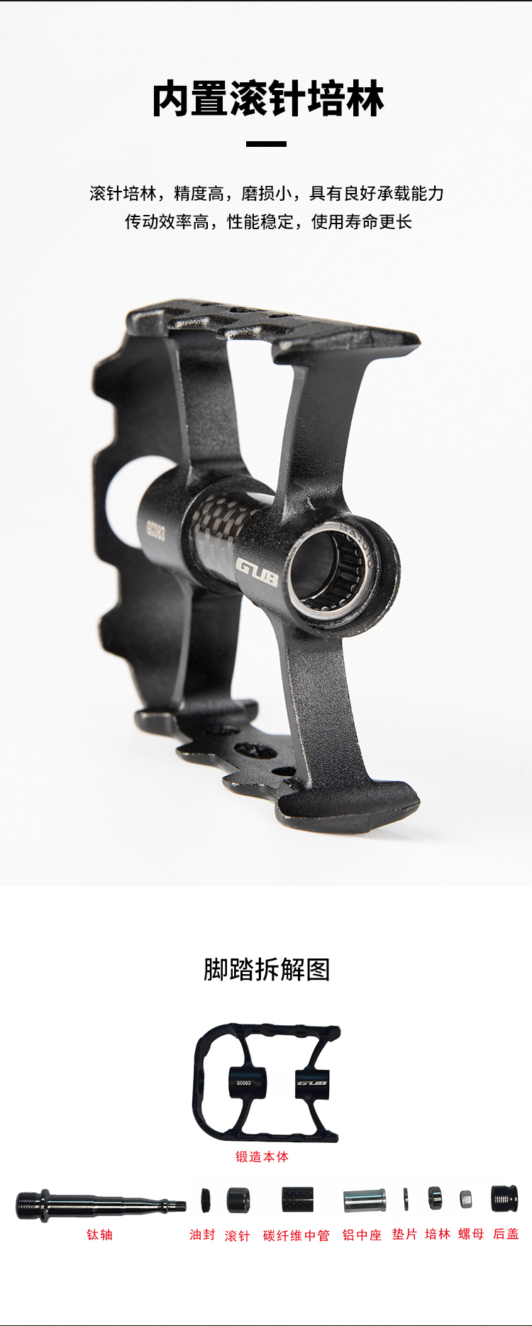 材質:鋁合金腳踏主體+碳纖維中管+鈦合金軸心