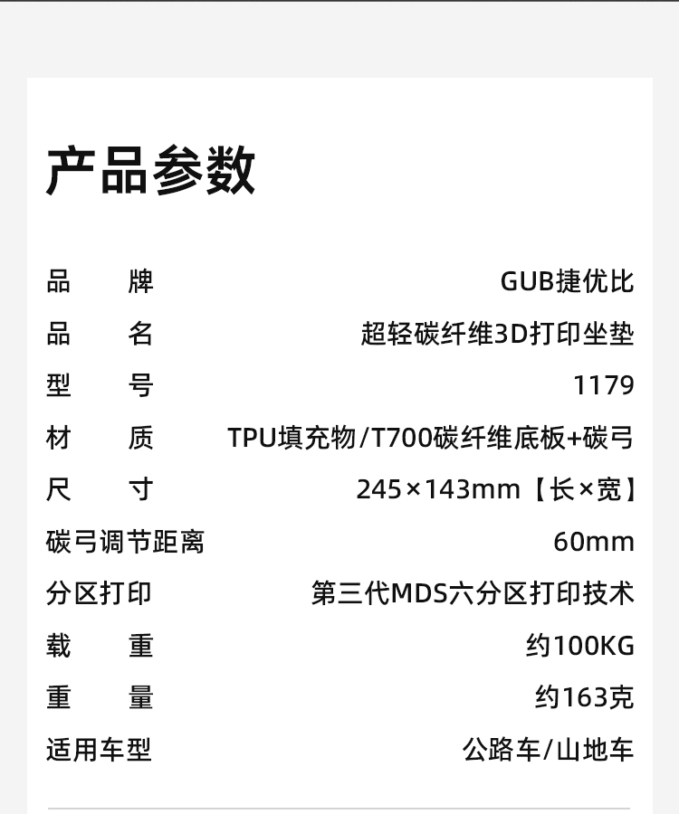 材質:TPU填充物、T700碳纖底板+碳纖弓