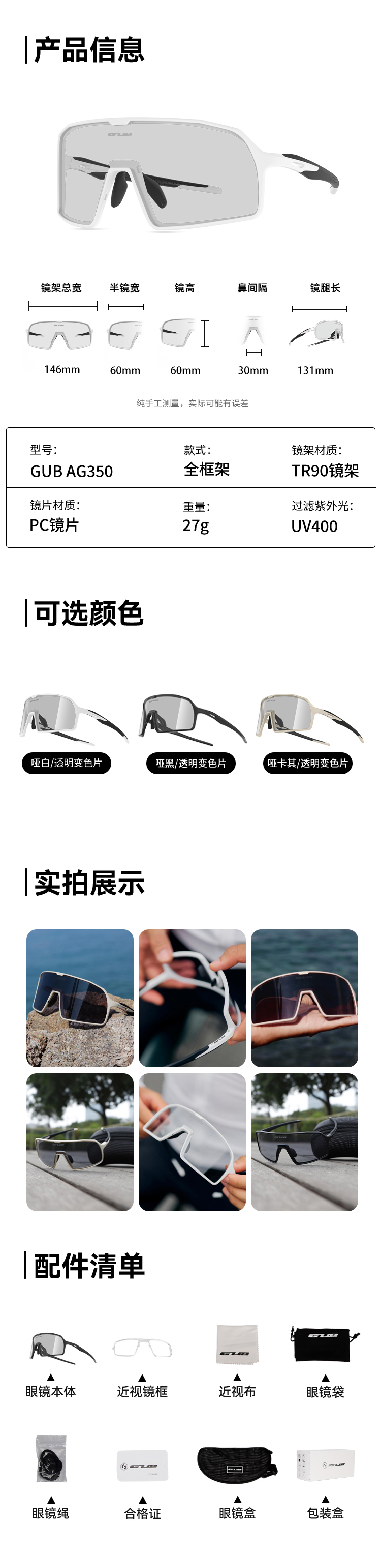 顏色:啞白/透明變色片、啞黑/透明變色片、啞卡其/透明變色片