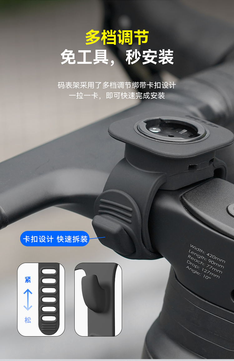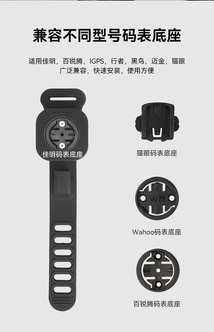 特點:硅膠架體,不傷車把,安裝方便,兼容多種碼表